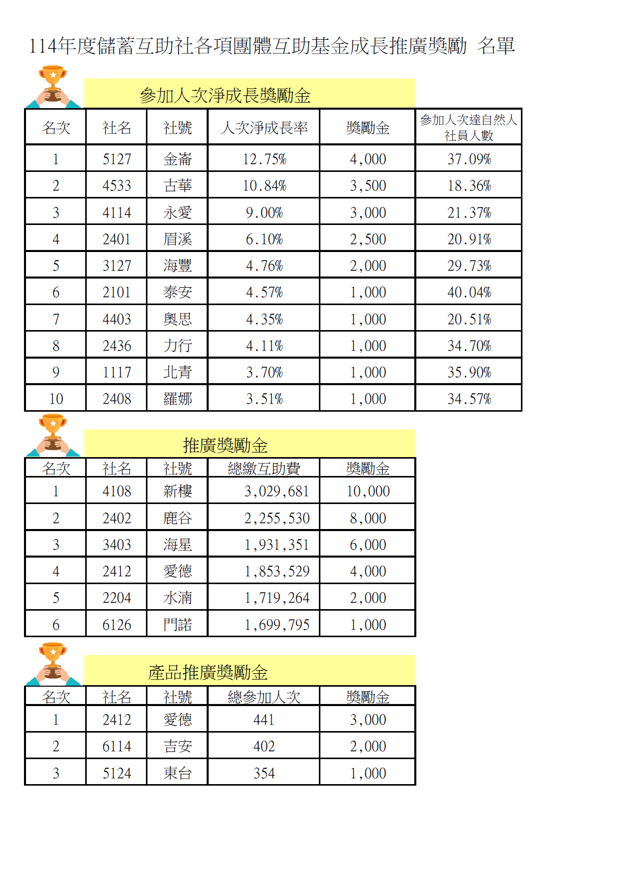 Post published:2026 年 2 月 6 日Post category:督導組公布114年度儲蓄互助社各項團體互助基金成長推廣獎勵名單如附件。獎勵金預計於115/2/12匯款。分享此文:按一下以分享至 Facebook(在新視窗中開啟)分享到 Twitter(在新視窗中開啟)點這裡列印(在新視窗中開啟)請按讚:喜歡 正在載入...