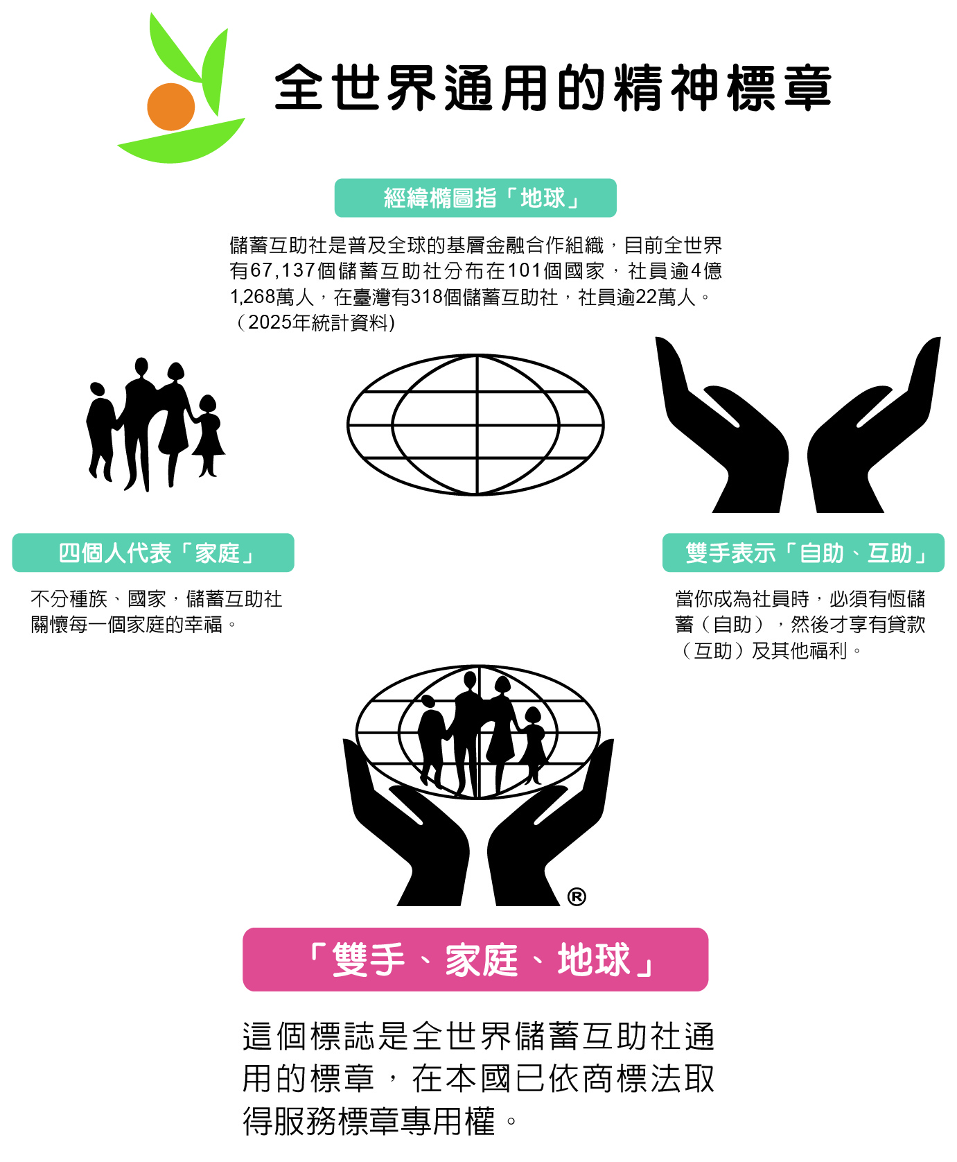 | 備註: 為與國際上其他國家之儲蓄互助社各級單位區分,經理事會決議 中華民國儲蓄互助協會於國際上所使用之標章如右圖所示: | ![]() |