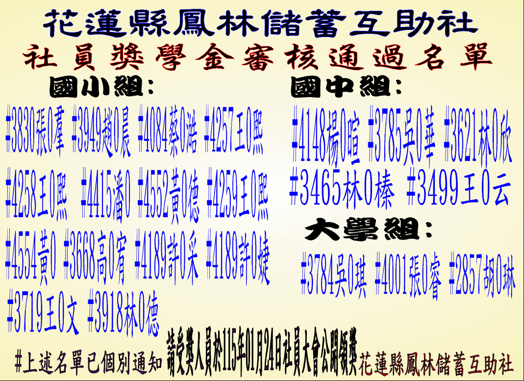 115年社員大會日期:115年1月24日(六) 地點:鳳林國小活動中心